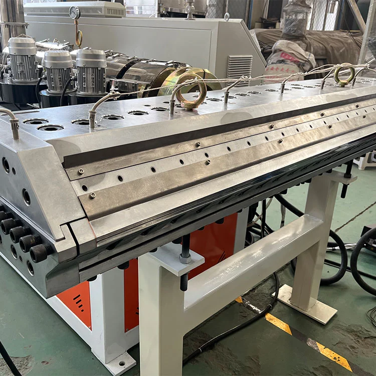วัสดุแม่พิมพ์: การปลอมแปลงเหล็กและการแบ่งเบedหัวแผ่นที่มีที่แขวนเสื้อผ้ามีความหนา 1-6 มม. และกว้าง 1 0 00 มม.ความกว้างที่มีประสิทธิภาพของแม่พิมพ์คือ 1 15 0 มม. ต่อชุดกำลังทำความร้อนคือ 1 5kW และใช้วิธีการทำความร้อนภายในเขตควบคุมอุณหภูมิส่วนที่ 5ช่องสัญญาณการไหลของหัวอยู่ในรูปแบบของช่องสัญญาณที่แขวนเสื้อผ้าแบบค่อยเป็นค่อยไปและหัวทำจากเหล็กโลหะผสมคุณภาพสูง 5Crnimo ขัดหลังจากชุบโครเมี่ยม ริมฝีปากที่ตายแล้วดันการปรับขนาดเล็ก
