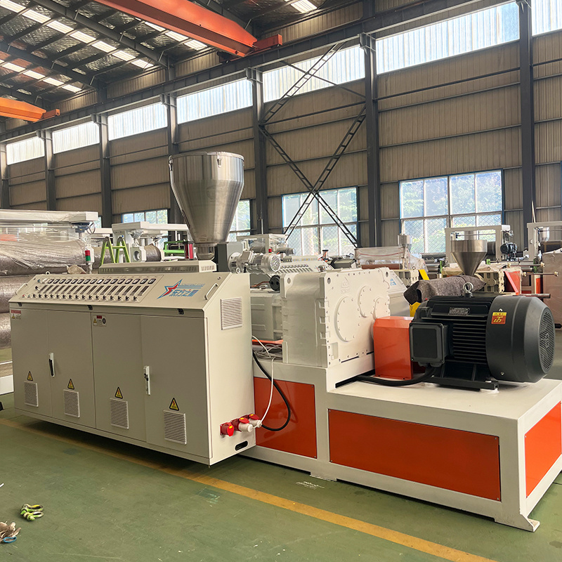 เครื่องอัดรีดสกรูคู่ทรงกรวย พร้อมด้วยคุณสมบัติเฉพาะต่างๆ ของแม่พิมพ์และอุปกรณ์เสริมที่ผลิตโดยชิงเต่า Eaststar พลาสติกเครื่องจักร Co., Ltd.,สามารถแปรรูปผงพีวีซีเป็นผลิตภัณฑ์พลาสติกได้โดยตรง เช่น ท่อ แผ่น และโปรไฟล์