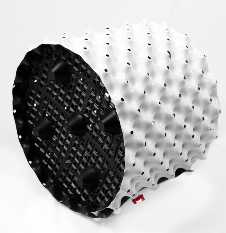 การขึ้นรูปโครงสร้างการควบคุมราก: กดอย่างต่อเนื่องสลับโครงสร้างคลื่น/ส่วนที่ยื่นออกแบบยกขึ้นและแบบปิดภาคเรียนลงบนวัสดุแผ่น และเจาะรูระบายอากาศที่ปลายส่วนที่ยื่นออกมาเพื่อให้ได้เอฟเฟกต์การควบคุมรากทางกายภาพ "การควบคุมรากด้วยอากาศ"