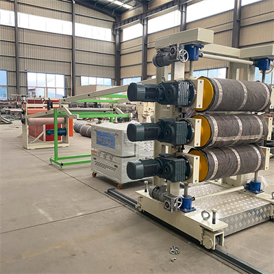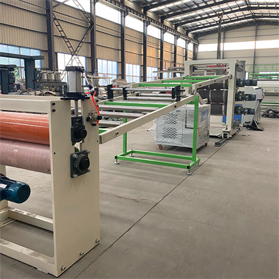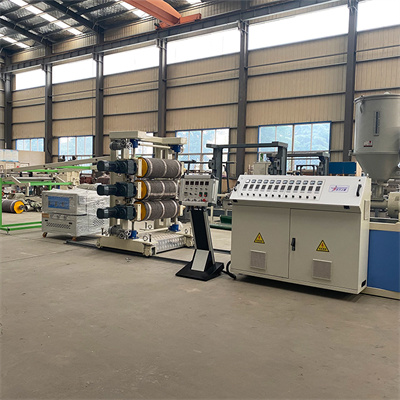 อนุภาค PS แห้งจะถูกส่งไปยังกรวยอัดรีดผ่านอุปกรณ์ป้อนอัตโนมัติ สกรูเครื่องอัดรีดจะค่อยๆ ละลายอนุภาค PS ที่เป็นของแข็งให้กลายเป็นการหลอมที่สม่ำเสมอผ่านการหมุนและการทำความร้อนภายนอก วัสดุที่หลอมละลายจะถูกผลักไปที่ T-die (ช่องการไหลแบบเรียบ) เพื่อกำหนดความกว้างของแผ่นเบื้องต้น ฟิล์มหลอมเหลวจะเข้าสู่เครื่องรีดแบบสามม้วนและแข็งตัวและขึ้นรูปอย่างรวดเร็ว เครื่องดึงแผ่นที่มีรูปทรงจะถูกดึงด้วยความเร็วสม่ำเสมอ และเครื่องเล็มจะขจัดเสี้ยนออก สุดท้ายก็ม้วนเป็นม้วนธรรมดาโดยใช้เครื่องม้วน