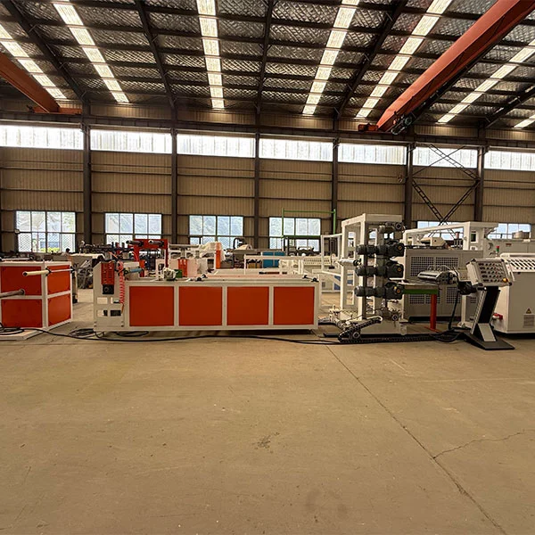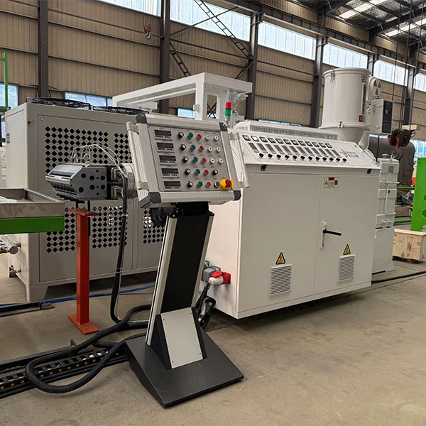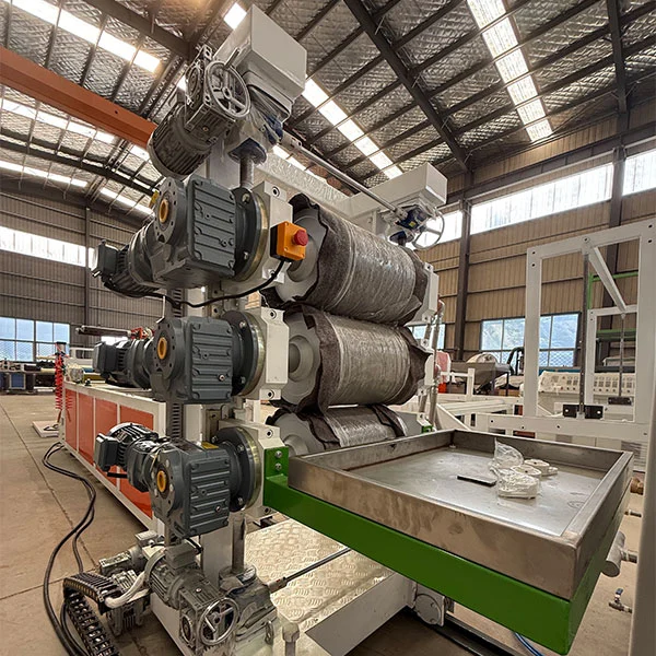แม่พิมพ์แผ่น TPU ใช้หัว T-DIE ที่ทำจากโครเมี่ยม การออกแบบเส้นทางการไหลนั้นสมมาตรและราบรื่นโดยไม่มีจุดตาย ช่องว่างริมฝีปากตายสามารถปรับได้อย่างละเอียด (มีความแม่นยำ 0.01 มม.) ซึ่งรองรับความหนาของแผ่นจาก 0.1 ถึง 5 มม. เครื่องอัดรีดแผ่น TPU ติดตั้งเครื่องระบายความร้อนและการปรับแต่งแบบสามตัว พื้นผิวลูกกลิ้งเป็นกระจกขัดเงาและอุณหภูมิน้ำเย็นถูกควบคุมโดยระบบอุณหภูมิคงที่ สิ่งนี้ช่วยให้การระบายความร้อนและการปรับแต่งอย่างรวดเร็วในขณะที่มั่นใจได้ว่าพื้นผิวที่เรียบและไม่มีรอยขีดข่วน ความแบนและความหนาของแผ่น (ภายใน± 0.03 มม.) ถูกควบคุมโดยความดันระหว่างลูกกลิ้ง